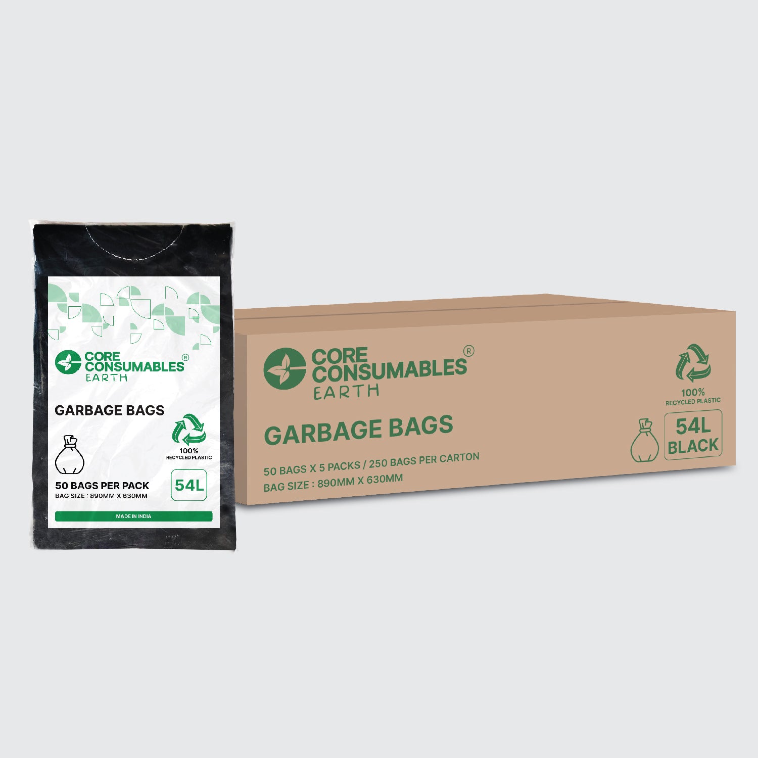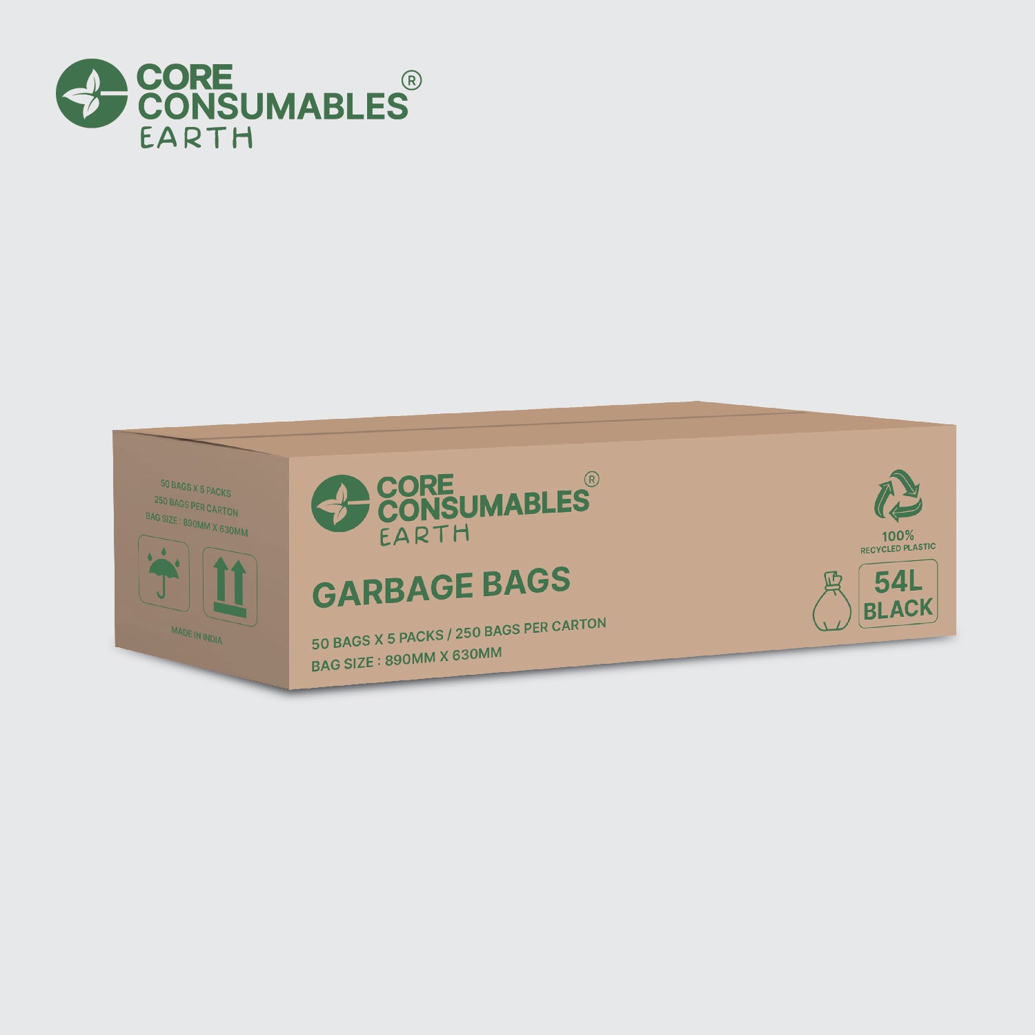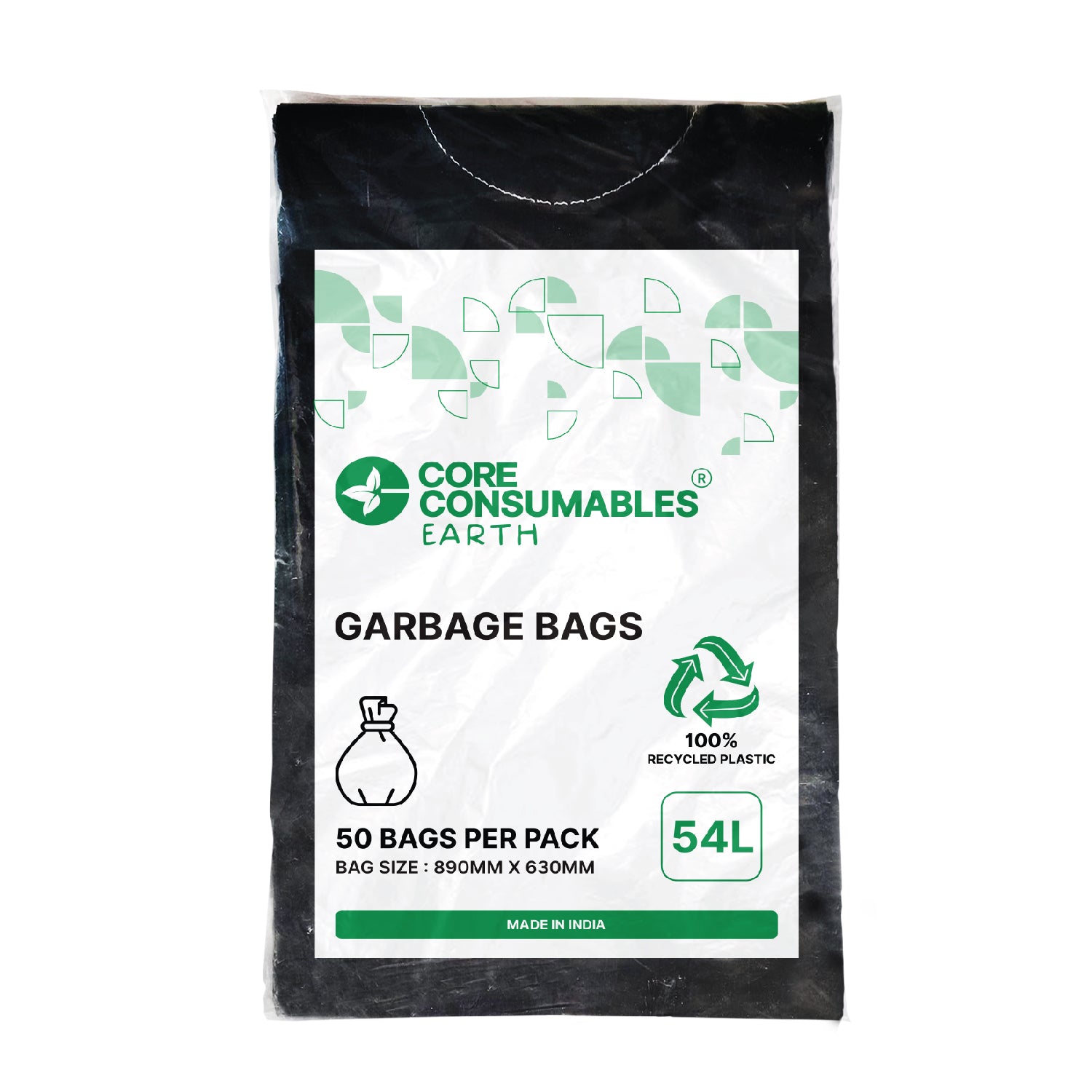 Core Consumables 54L Ultra ExtraHeavy Duty Garbage Bags – your go-to solution for robust waste management made sustainably. Crafted from 100% recycled plastic, these bags combine strength with eco-consciousness.