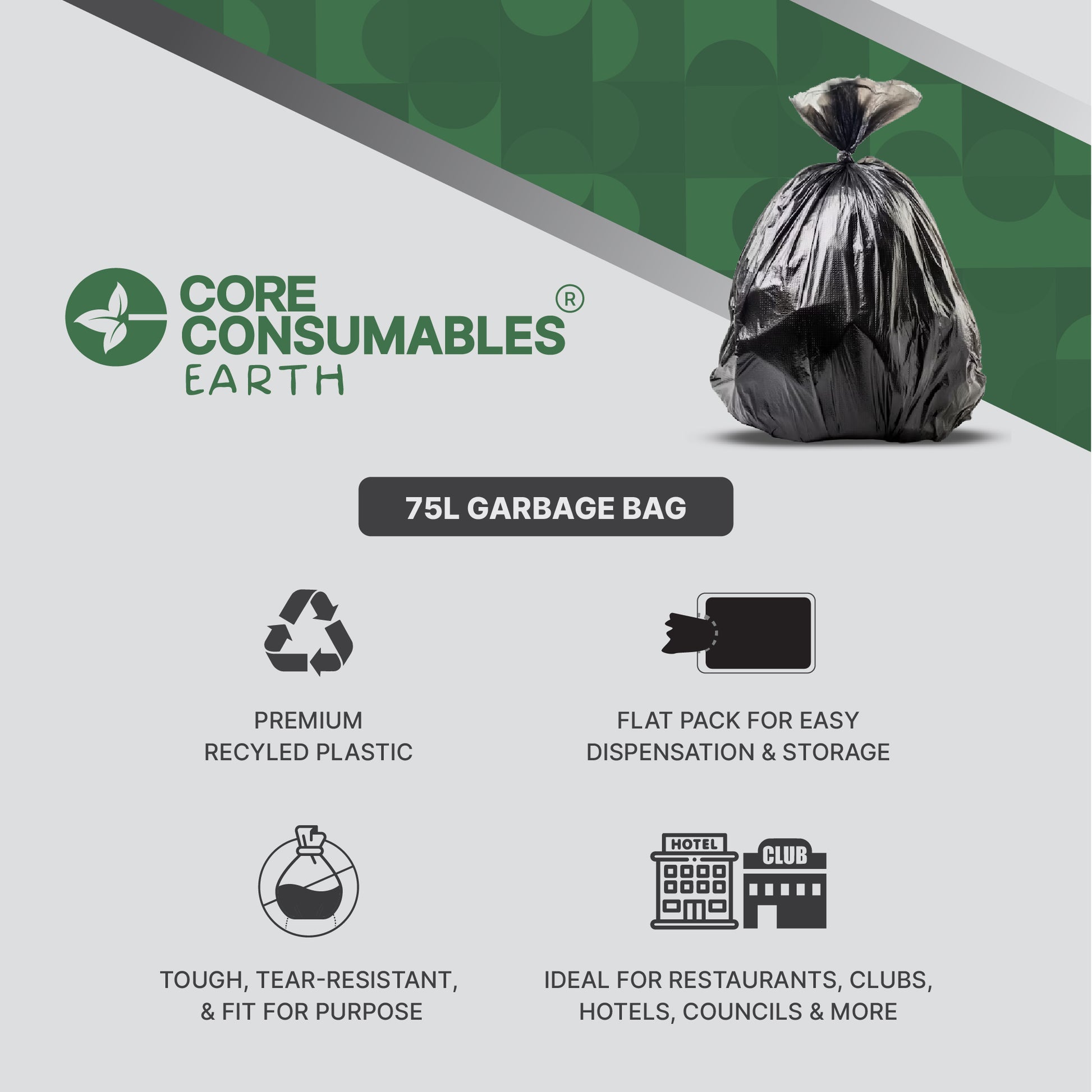 Core Consumables 75L Ultra ExtraHeavy Duty Garbage Bags - 250 Bags per Carton